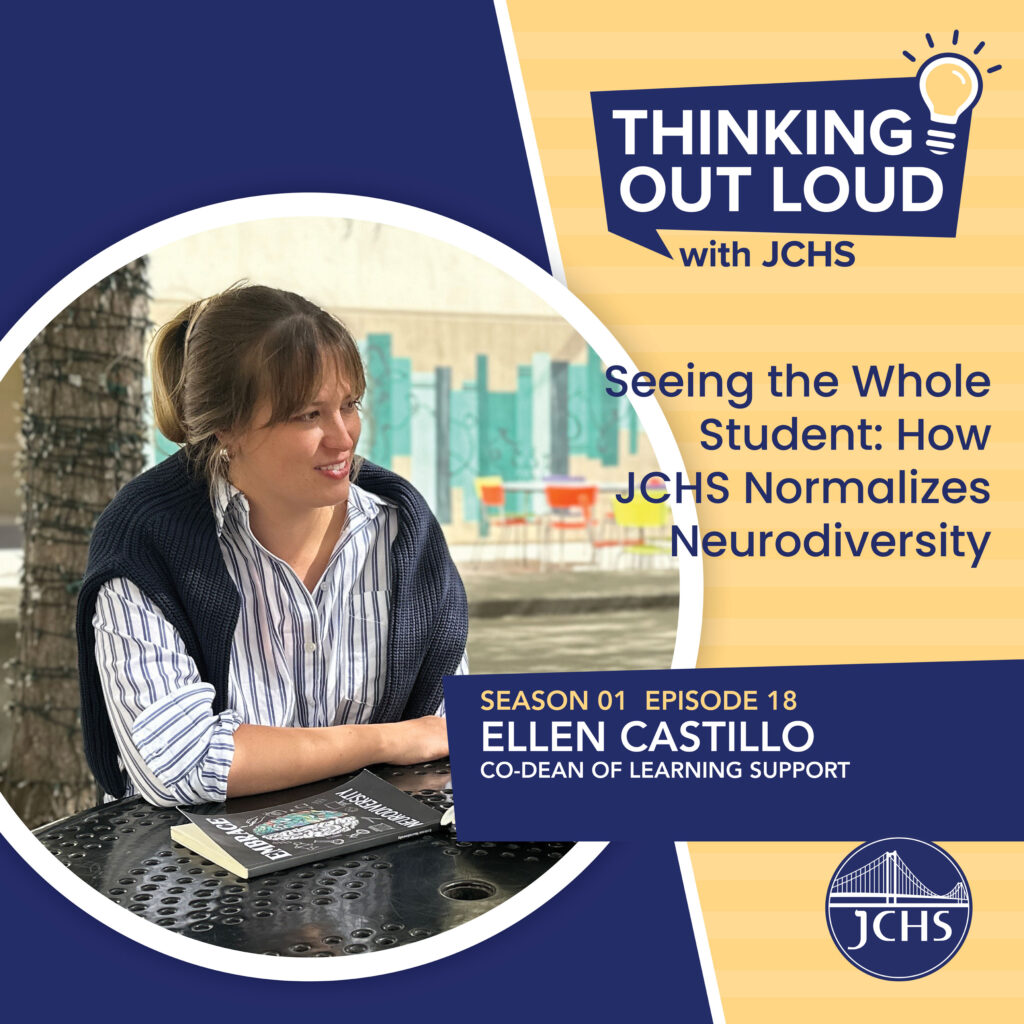 What if the most important thing school taught you was how your brain works? In this episode of Thinking Out Loud, we sit down with Ellen Castillo, Co-Dean of Learning Support at JCHS, to talk about how a neurodivergent-affirming school culture helps students feel comfortable talking about how they learn. Ms. Castillo shares how JCHS normalizes neurodiversity through open conversations, student panels, and relationships built on trust—so no one feels like they have to hide who they are. We’ll break down what it really looks like to support different kinds of learners, including twice-exceptional students, by focusing on strengths instead of “what’s wrong.” Ms. Castillo explains how understanding your learning style and advocating for yourself in high school can set you up for life well beyond the classroom.