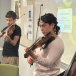 Music is an essential part of life at JCHS from informal singalongs during the Shabbaton and Journeys to formal courses offered through the Visual and Performing Arts Department. Students may find opportunities to perform at Hakhel, our weekly all-school gathering, or as a band member for the fall musical, during the Student Coffeehouse, and during our annual Arts Review program. You’ll also frequently find students simply hanging out in the Courtyard with their instrument and playing music as a way to unwind.