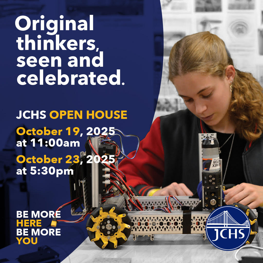 At JCHS, you don’t just attend school—you lead your own learning journey. In a community that sees and celebrates each individual, you are encouraged to think originally, grow intentionally, and live authentically. Here you’ll find the kind of academic rigor, creative innovation, and deep personal connection that prepares students not only for outstanding colleges—but for lives of purpose, leadership, and impact.